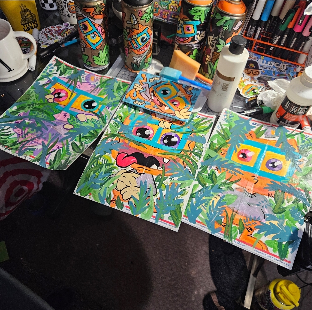 Own this original Alleycat 8x10 acrylic sticket art piece. Created a series of bright tabby cat theme of this hooliganz4hire! Alleycat the professional party animal feels a fit showing on Priorty mailing stickers label 228.