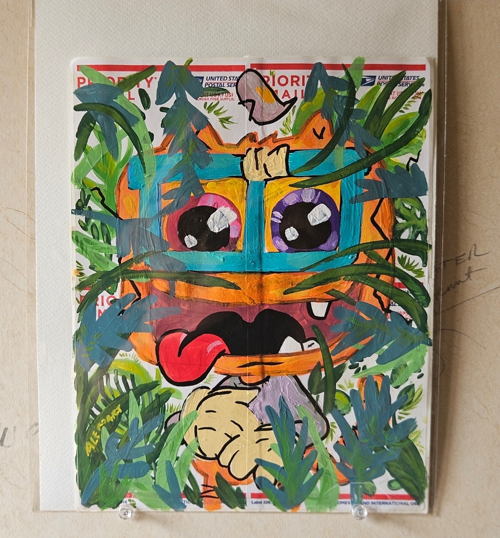 Own this original Alleycat 8x10 acrylic sticket art piece. Created a series of bright tabby cat theme of this hooliganz4hire! Alleycat the professional party animal feels a fit showing on Priorty mailing stickers label 228.
